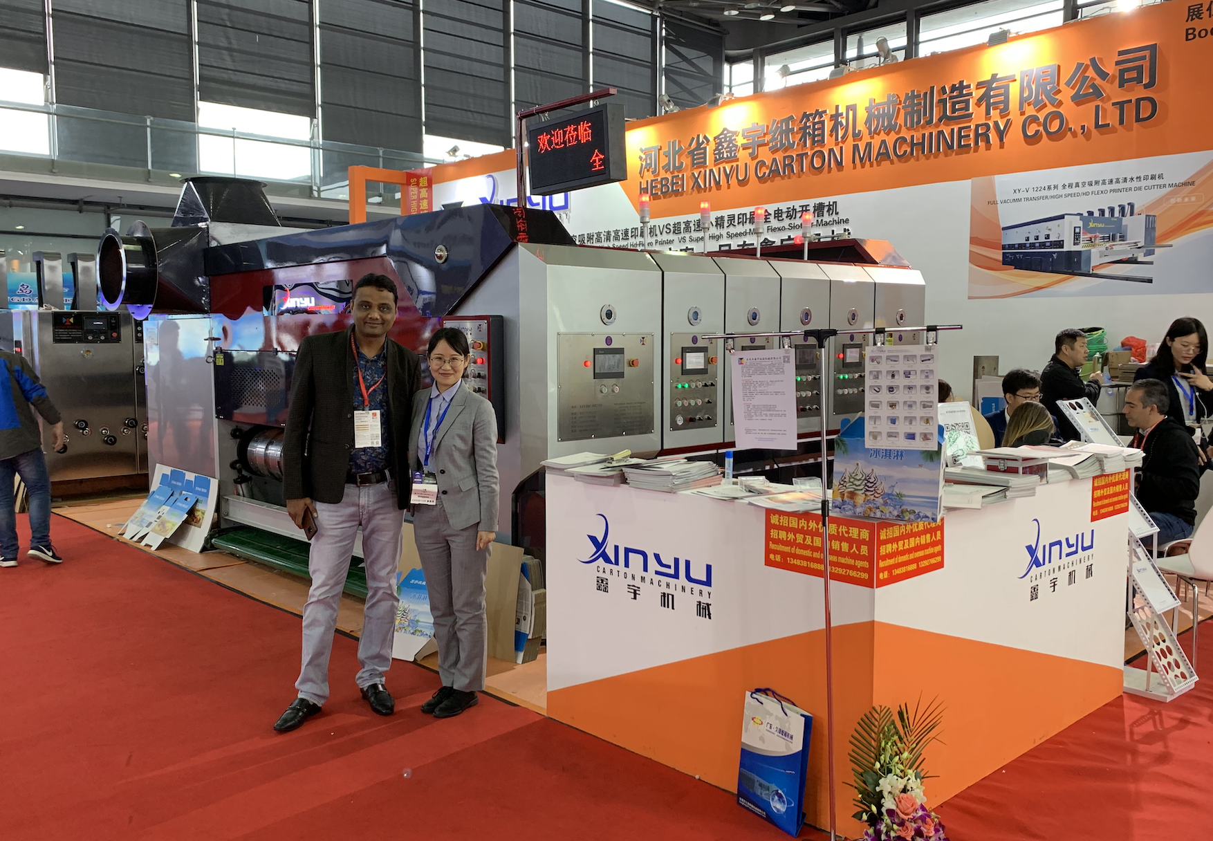 展會于2019年4月在上海·浦東舉辦。同期還舉辦2019中國國際彩盒展、2019中國包裝容器展、2019上海國際軟包展和2019上海國際紙展,五展同期,盛況空前。鑫宇紙箱機械攜真空吸附機型以及迷你高速機,在展會上收獲頗多客戶。